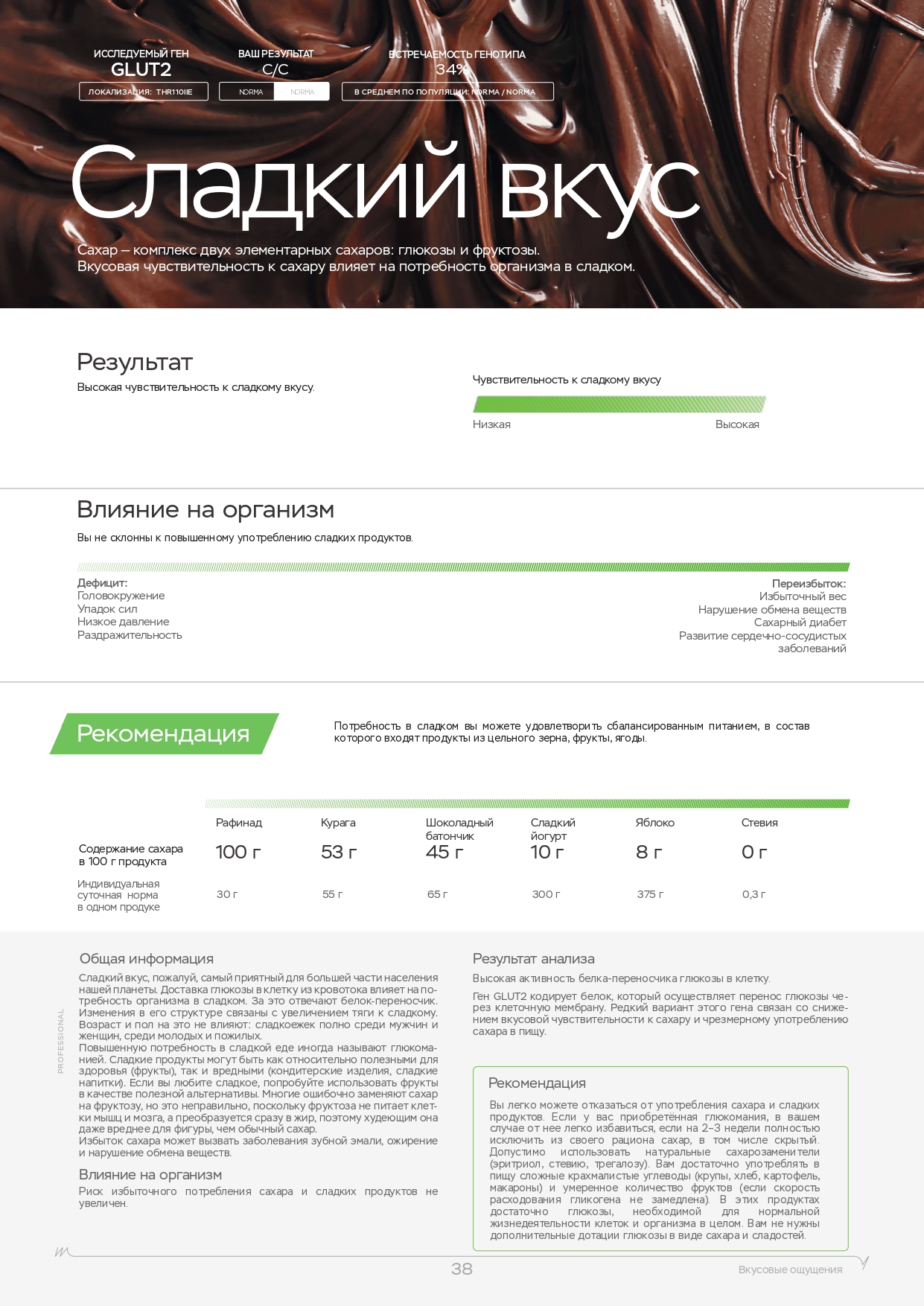 Помните, что помимо физических нагрузок, большую роль играет питание. Вы также можете пройти ДНК-тест на диету, который покажет, каких веществ не хватает в организме, какие организм усваивает лучше, а какие хуже и многое другое.